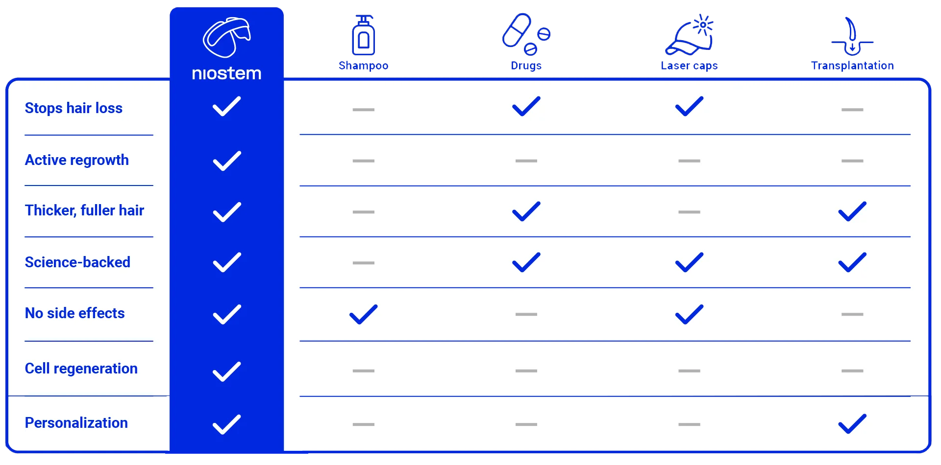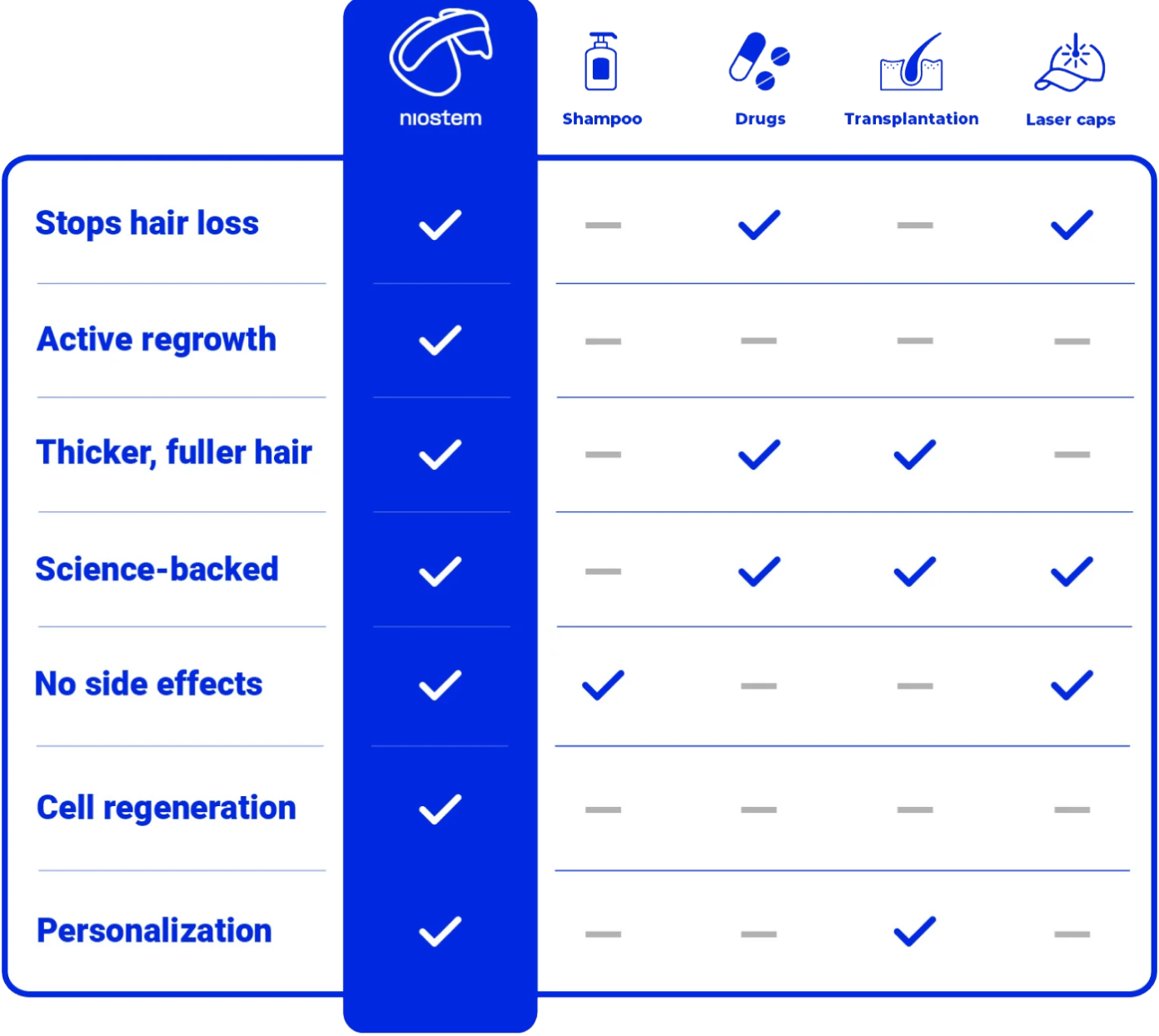 The niostem wearable enables the body to restore it’s natural, physiological hair regeneration cycle.